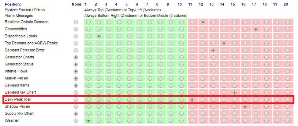 Users can quickly evaluate the risk level to decide whether today will contain a top 5 Ontario Demand Peak or not. The widget provides information on the current peak demand forecast for the day, the hour of the forecasted peak, and the risk level of it becoming a top 5 demand peak. From a quick glance, Ontario Class A consumers will know if there is a risk of a peak.How to best use it?